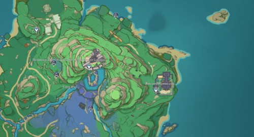 Здесь можно найти 5 зеркальных дев. Та, что находится возле морского побережья (на севере острова) всегда сопровождается Пиро агентом Фатуи, поэтому битва будет не из легких. До остальных можно добраться путем перемещения в Великий храм Наруками и планирования с горы вниз.