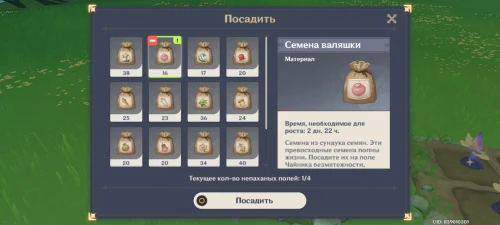- Купить у Пухляша участок «Путь ценности: Нефритовое поле». Всего можно взять 2 штуки, каждая из которых имеет 4 места для посадки.