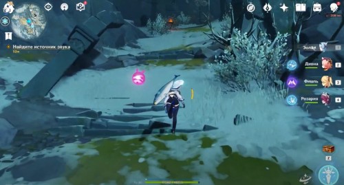 После разговора с ребенком найдите Эмбер в заснеженном регионе. Далее следуйте за источником звука, идя в отмеченные области. Нужно будет подниматься по тропинке наверх. Разберитесь с хиличурлами и продолжайте подниматься. Далее идите в лагерь Альбедо, находящийся неподалеку.
