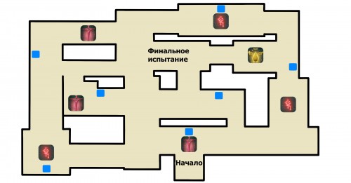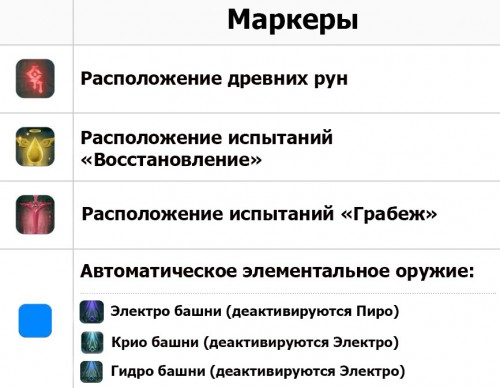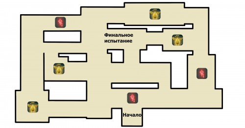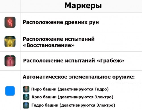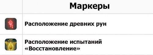 На скриншотах ниже демонстрируется карта данного уровня и обозначение маркеров. Используйте ее, чтобы быстро найти нужные древние руны и испытания. Впрочем, их легко обнаружить самому, просто идя в сторону красных столбов света.