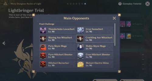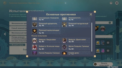 В верхней части вызова находятся сразу 4 испытания на Восстановление, поэтому вы можете поменять целителя на еще одного второстепенного ДПС, к примеру, на Син Цю или Тому (он сможет наделить ваш отряд щитами). Правда, в последнем испытании придется сразиться одновременно с Электро лавачурлом и Крио шамачурлом. Биться с ними без лекаря будет непросто. Однако с дополнительным бойцом вы можете попыться быстрее уничтожить их.