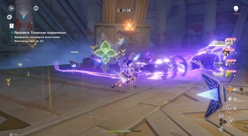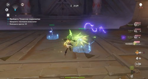 Добавим, что в финальном испытании вам предстоит сражаться с Гидро, Пиро и Крио магами бездны. Быстро разбейте их щиты, используя Кадзуху, направляя их атаки друг против друга. Когда их защита пропадет, используйте атаки, бьющие по площади, чтобы наносить им всем урон, не позволяя никому из них восстановить свои щиты.