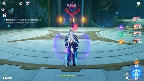 На скриншоте выше показаны пробные герои, которых вы сможете использовать в данном испытании. Учитывая аномалию артерий земли и второстепенную цель испытания, мы настоятельно рекомендуем взять Гидро и Дендро персонажей, а также одного целителя.