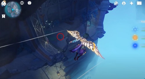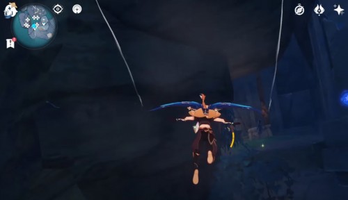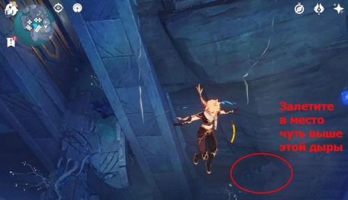 Справа от моста, на котором вы обнаружили предыдущего ребенка, в скале немного ниже можно увидеть дыру. Вам необходимо будет залететь в отверстие, находящееся чуть выше нее (сверху ее не видно).