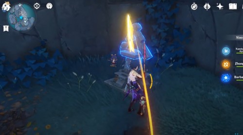 С платформы летите в сторону синего барьера. За ним вы увидите ребенка-призрака. Теперь пройдите направо рядом с колонной, чтобы добраться до выступа с местом поклонения. Взяв силу ночи (синяя аура), поднимитесь наверх и активируйте Белую ночь.