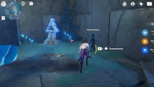 В результате вы сможете убрать барьер. Спуститесь вниз и пройдите в комнату, где ранее был Исумэнасу. Приблизьтесь к треугольному механизму и ударьте по нему один раз, чтобы передвинуть стену.