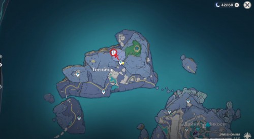 Оно расположено прямо неподалеку от центрального телепорта правого островка. Переместившись, заберитесь на возвышенность, на которой находится камень и лампа.