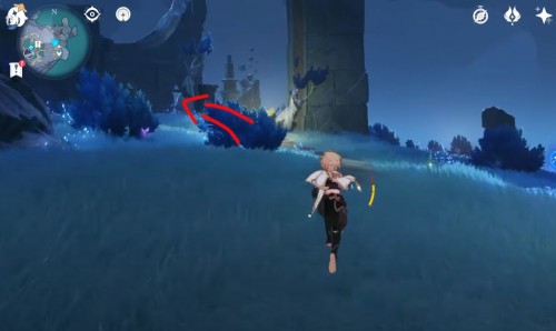 Телепортируйтесь в центр области, а затем бегите на северо-запад. Нужный булыжник находится на холме. Рядом бродит Электро лавачурл, поэтому будьте осторожны. Дождитесь появления комментария от Паймон, чтобы вам засчитался этот камень. Затем можете взобраться на ближайшую колонну, чтобы прочитать записку на лампе.