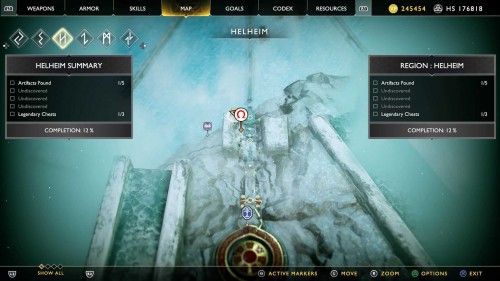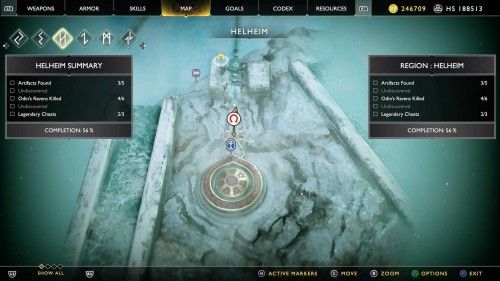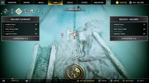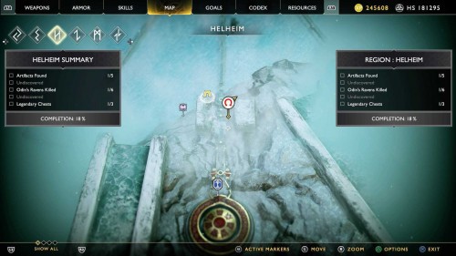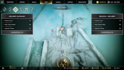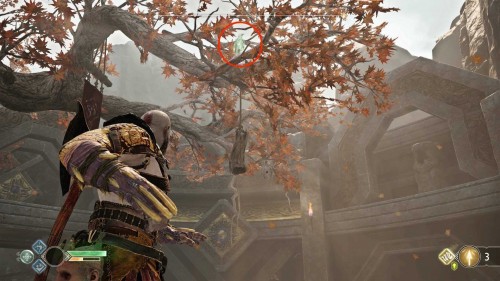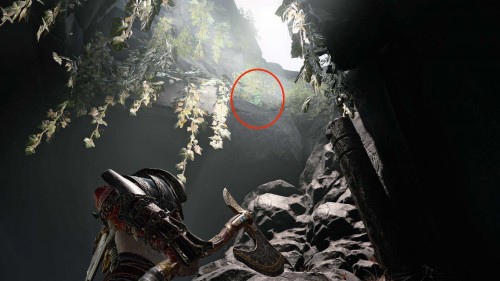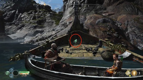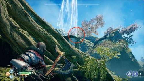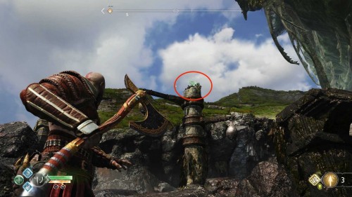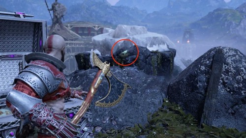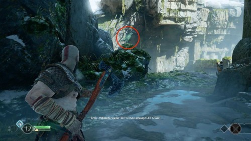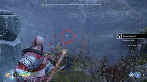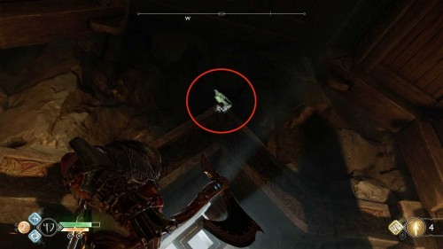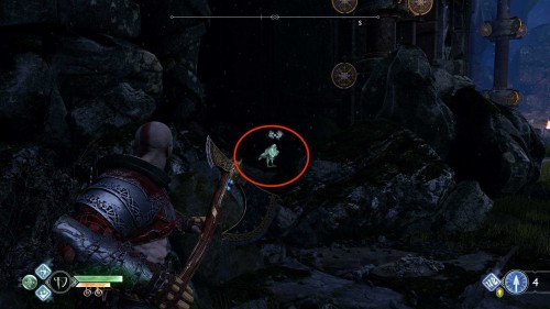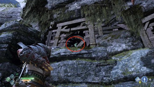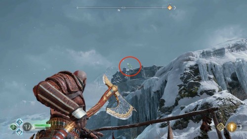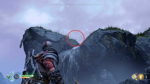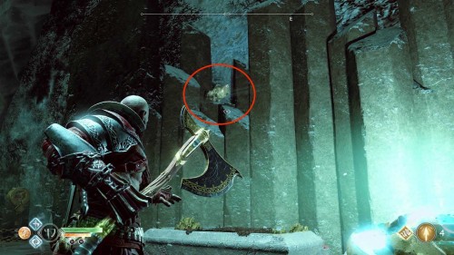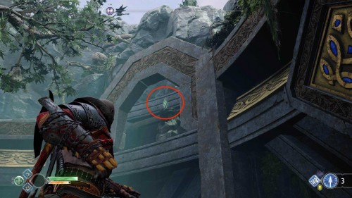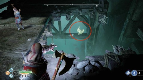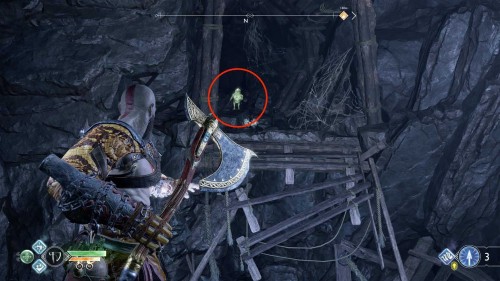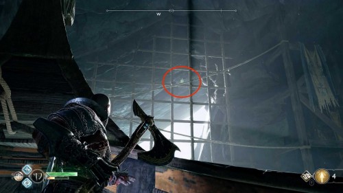 Пройдите по первому мосту и спуститесь дальше по нижним уровням Хельхейма. Когда спуститесь со скалы, которая приведет вас к большому пустому ледяному участку, посмотрите налево, и вы увидите ворона, летающего кругами под скалой.