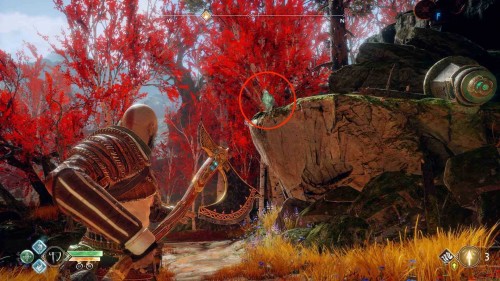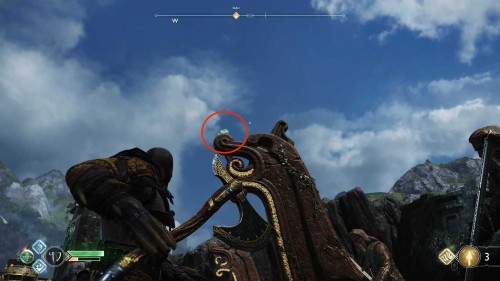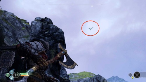 Идите по тропинке направо от крепости Конунсгард. Поднимитесь на платформу, расположенную в той области, где вам нужно сразиться с Огром и Хель-ходоками, прыгните на среднюю площадку и посмотрите на юг. Нужная вам птица будет сидеть на скале напротив.