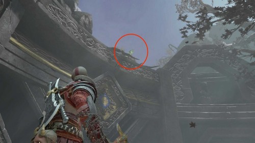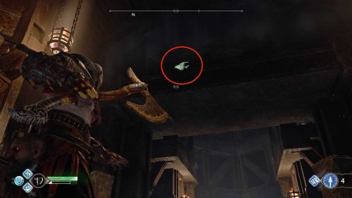 Спуститесь на подъемнике в тайной комнате и отправляйтесь на арену, где вам предстоит сражение с валькирией Эйр. Когда войдете, посмотрите налево, и вы увидите ворона, сидящего на выступе.