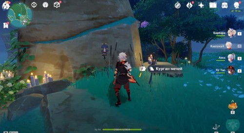 Что же теперь делать с ржавым ножом? Переместитесь в Инадзуму на остров Наруками. Направляйтесь к кургану мечей, в котором вы уже бывали ранее. Он находится на равнине Бякко. Взаимодействуйте с ним и вставьте клинок.