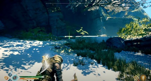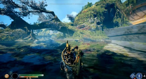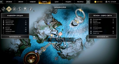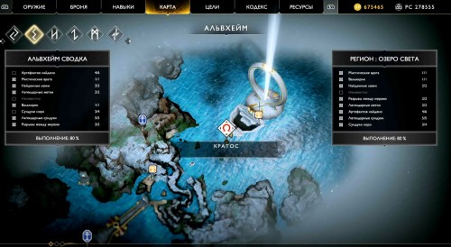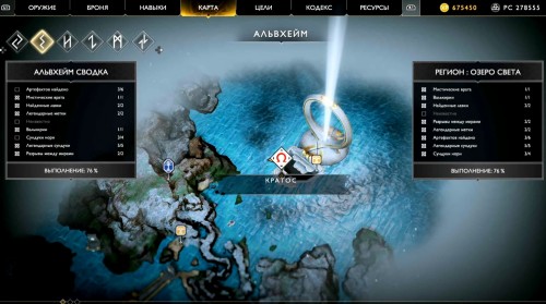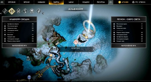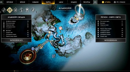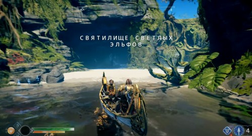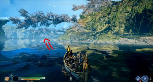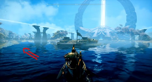 Отправляйтесь в указанный регион, садитесь на лодку и доберитесь до места, показанного на карте ниже (по сюжету именно с этого места герои отплывают, получив Свет Альвхейма). Когда впереди увидите врата, плывите налево вдоль берега, а затем снова сверните влево рядом с колонной света.