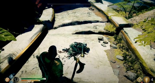 Вы увидите разлом на краю. После победы над врагами сверните вправо и забегите в пещеру. Разрушьте лозы, пройдите по деревянному мостику и уничтожьте последнюю лозу, чтобы открыть доступ к реликвии.