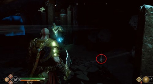 Пройдите через небольшую пещеру и сразу же сверните направо. Затем взгляните наверх, и вы увидите под каменным мостом ветки. Сожгите их с помощью клинков хаоса, чтобы артефакт упал на землю.