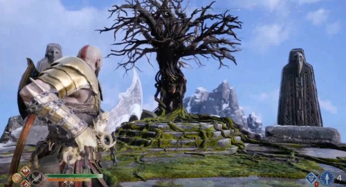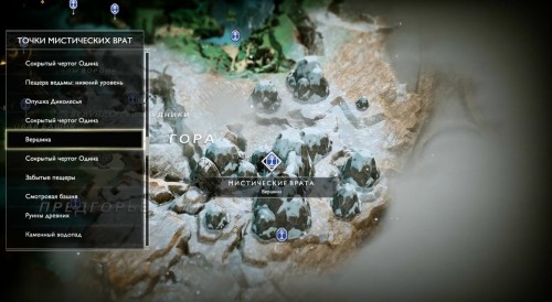 Переместитесь к мистическим вратам «Вершина», которые вы откроете при выполнении сюжетного задания. Затем поднимитесь по каменной лестнице на самую верхушку, где стоит дерево, и справа от тела Мимира спуститесь с выступа.