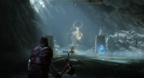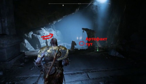 Прикажите Атрею выстрелить в этот кристалл, чтобы уничтожить смолу. Бегите вперед за клетку и отыщите в небольшой нише реликвию рядом с трупом. Это все чаши из комплекта «Вверх дном», которые можно найти в God of War на Горе. Отметим, что их поиски позволяют открыть достижение «Антиквар».