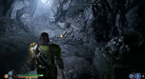Вам нужно будет пройти из Предгорья к вершине горы (сделать это можно и по сюжету), чтобы добраться до зала, где на троне восседает человек с головой оленя. Теперь сверните вправо и пройдите через тоннель. Вы увидите впереди мост, на котором висят скелеты. Идите под ним, поднимитесь на выступ рядом с руной и держитесь правой стороны.