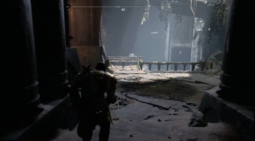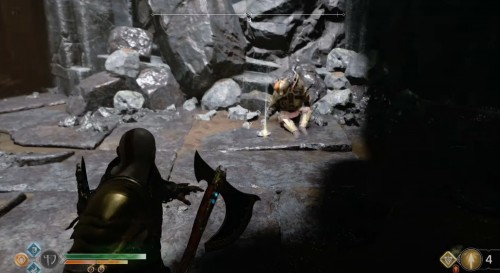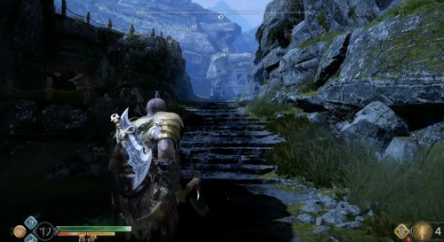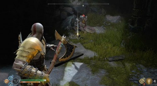 Теперь заберитесь наверх по каменным выступам. Поднявшись, поверните направо и спуститесь с другого уступа. С правой стороны будет деревянная баррикада, которую вам нужно будет разрушить топором. Пройдите в проход и возьмите реликвию рядом с трупом.