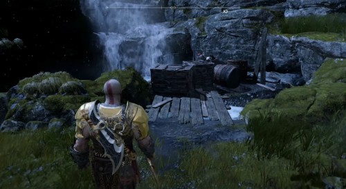 От прошлого артефакта идите вглубь области. В качестве ориентира можно использовать большого дракона. Поднимитесь по каменной лестнице, а затем поверните направо возле каменной чаши, чтобы добраться до водопада. Сломайте ящики, и за ними вы увидите реликвию, лежащую возле трупа бойца.
