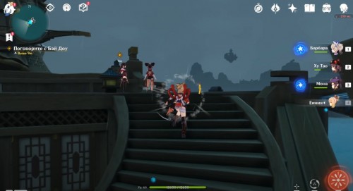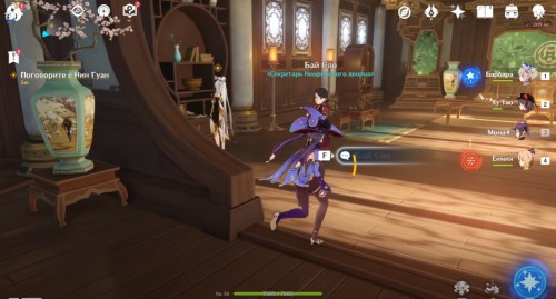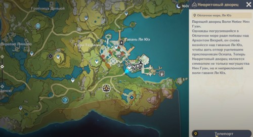 Первым делом вам необходимо будет направиться в Нефритовый дворец, чтобы поговорить с Нин Гуан. Нужный объект парит возле Гавани Ли Юэ. Вы теперь можете попасть сюда с помощью обычного телепорта на карте. Посмотрите короткую кат-сцену.