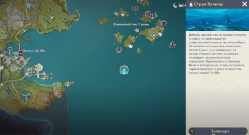 После этого перейдите в меню «События», откройте раздел «Страж пучины» и телепортируйтесь к проходу в соответствующее подземелье. Он находится на одном из островов каменного леса Гуюнь. Данное испытание будет доступно только до 12 февраля 2022 года.