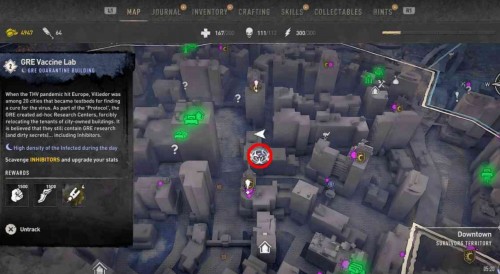 Лучше всего посещать эти локации ночью, потому что внутри будет меньше врагов (можно поспать в постели в убежище для перемотки времени). Направляйтесь в место, где расположено здание с зараженными (все они указаны ниже). Вам нужно будет взобраться на крышу, так как входы в эти сооружения находятся только наверху. Обычно рядом с ними есть строительные леса, на которые можно взобраться. Вы также можете прокачать свой планер, а затем найти точку повыше и спланировать с нее на крышу изолятора.