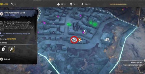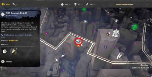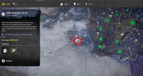 Можете полностью игнорировать обычных зараженных, так как вам нужно лишь победить ревенанта для завершения этого испытания. Разобравшись с ним, вы увидите оранжевый маркер, указывающий на трейлер, стоящий неподалеку. Заберитесь на него, откройте люк и спрыгните вниз. Там вы найдете контейнер, в котором будут лежать 2 ингибитора (повышают выносливость и здоровье), а также уникальное снаряжение и другие ценности.