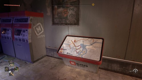 Примечание: Для получения трофея «Предъявите билет!» вам нужно будет найти в активированной станции карту метро (показана на скриншоте ниже), а потом взаимодействовать с ней и выбрать любой другой терминал, чтобы переместиться в него.