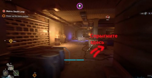 Поверните налево и подтянитесь. Бегите вперед, сделайте несколько прыжков и взаимодействуйте с четвертым генератором. Теперь возвратитесь в центр помещения и активируйте главную систему. Возвратитесь наверх на лифте и нажмите на кнопку, чтобы разблокировать метро. В безопасной зоне можно найти ящик с ингибитором.