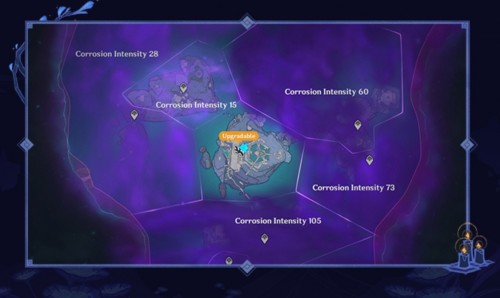 Однако если ее сопротивление окажется ниже показателя Разложения в локации, то ее энергия начнет уменьшаться, а персонажи получат негативный статус, снижающий их элементальное и физическое сопротивление, а также наносимые повреждения. Посмотреть действующий индекс Разложения команды можно с помощью специальной иконки «Окружение», размещенной в левом верхнем уголке экрана.