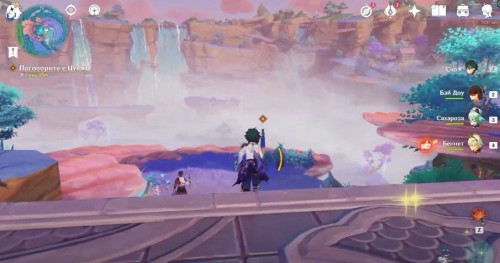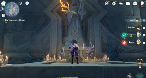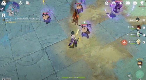 Идите к месту, где находятся монстры, используйте новый инструмент и перебейте всех хиличурлов. Тут также будет один Электро маг Бездны. После боя сразу же начнется заставка с Цуми.