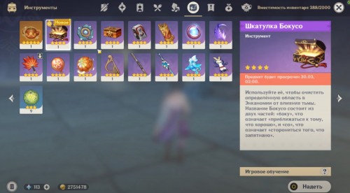 Примечание: Повысив уровень шкатулки Бокусо до определенного уровня, вы получите катализатор Око клятвы и материалы, необходимые для его пробуждения. Плюс, вам дадут корону прозрения.