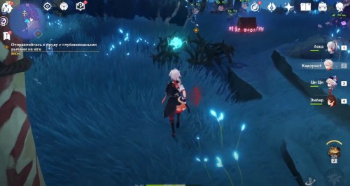 После этого появятся Электро и Пиро маги бездны, которых вам нужно будет победить. Советуем использовать Крио персонажа, чтобы снять щиты с врагов. Затем появится лавачурл и хиличурлы. Первым делом советуем уничтожить шамачурла, который будет лечить союзников. Расправившись с врагами, откройте сундук.