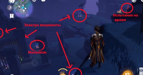 Вам нужно будет проникнуть за закрытую решетку. Для этого необходимо разблокировать четыре Электро монумента, а затем активировать их и взаимодействовать с механизмом. На скриншотах ниже демонстрируется расположение всех тотемов.