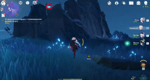 Последний расположен на возвышенности. Возле него бродит группа хиличурлов. Расправьтесь со всеми ними для разблокировки тотема. Активируйте его. Теперь взаимодействуйте с механизмом-кубом возле решетки.