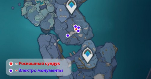 Направляйтесь в Теснину в место, указанное на скриншотах ниже. Там вы обнаружите заблокированный роскошный сундук и Электро фею, которая будет летать над пятью монументами, показывая в какой последовательности вам нужно их активировать.