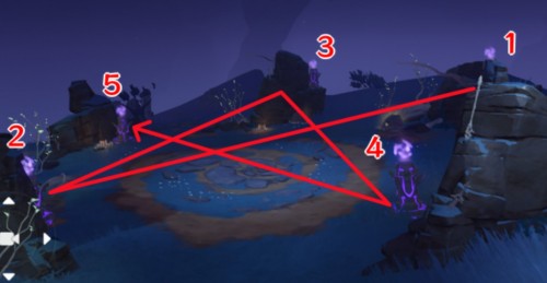 Если вы не запомнили маршрут полета духа, то просто взгляните на скриншот ниже, где демонстрируется нужный порядок. Активируйте тотемы, используя любые Электро атаки.