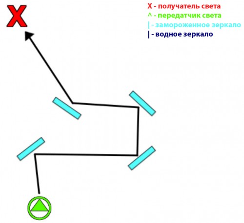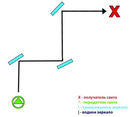 Все зеркала будут заморожены – растапливать их не нужно. Просто поверните ближайшее к передатчику зеркало три раза, а затем вращайте по одному разу два зеркала впереди. На картинках ниже указаны необходимые механизмы.