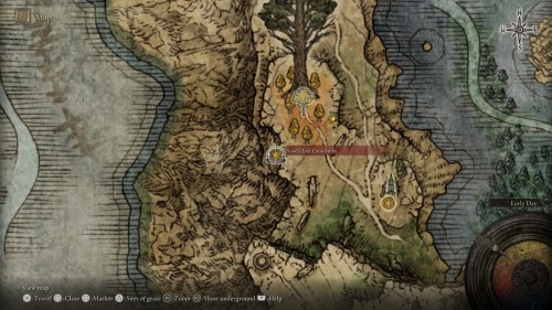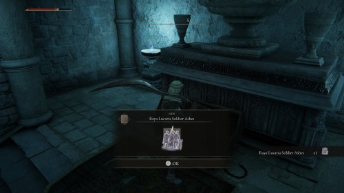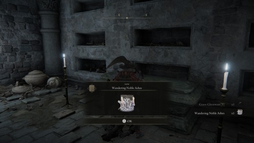Ее прах находится в подземелье Ведущие в гробницу катакомбы, которые довольно сложно найти. Если вы начнете с места благодати «Зона гробниц», то пройдите дальше вниз по утесу, идите на север, оставаясь рядом со скалой, пока не сможете подняться. Затем повернитесь и идите на юг, пока не дойдете до статуи, которая осветит путь, когда вы взаимодействуете с ней. Она укажет на скалу перед вами, где плавают две призрачные медузы – подойдите ближе, и вы найдете спрятанную дверь в катакомбы.
