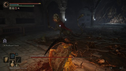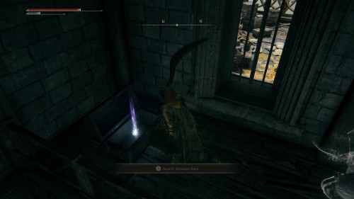 Если у вас есть только один мечевидный ключ, то идите и используйте его на телепорте, встав возле которого вы будете смотреть на север. Этот портал доставит вас в Часовню Предвкушения, где вам придется сразиться с мини-боссом. После того как победите его, следуйте по пути к часовне. При этом ищите вход справа, который приведет вас наверх к сундуку с прахом.