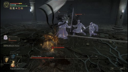 Как только окажетесь в Нокроне, вы можете спуститься вниз по освещенной дорожке, но пока не идите туда. Вместо этого поверните направо и пройдите вперед – вскоре вы найдете кладбище и ожидающих вас там врагов. Убейте их и идите в правый угол, где вы и найдете духа среди могил.
