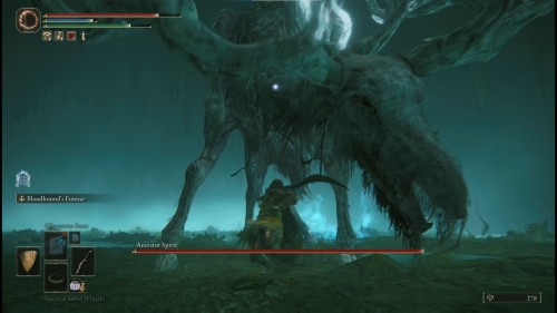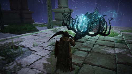 Вы получите сообщение, как только зажжете все факелы. Вернитесь в земли Священного рога на юго-востоке, и вы заметите светящийся скелет оленя в конце. Коснитесь его, и вы перенесетесь в другую область, где будете сражаться с Духом предка. В него может быть сложно попасть, так как он как бы парит в воздухе и может прыгать, а также телепортироваться, но как только вы победите его, с него выпадет нужный прах.