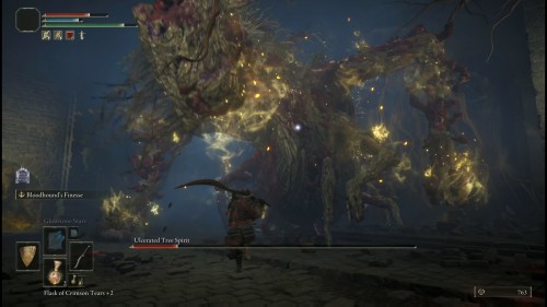 Однако призывать духов можно только в определенных областях. Когда вы видите белый светящийся символ в виде надгробной плиты в левой части экрана, это означает, что неподалеку когда-то произошла великая битва, что позволяет вам вызвать фантомов из другого мира. Как правило, игра дает возможность призывать существ в моментах, где нужно сражаться с большим количеством врагов или боссами.