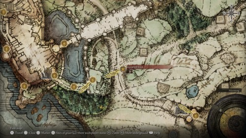 Во-первых, вам нужно направиться к Четырем колокольням на западной стороне Лиурнии, откуда открывается вид на Академию Рая Лукарии. Вы найдете там три телепорта, но для разблокировки каждого из них нужен мечевидный ключ. К счастью, один из них находится в сундуке в верхней части этой области у места благодати.