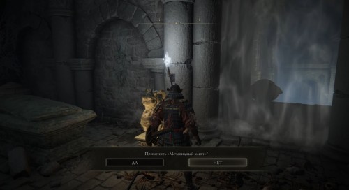 Из места благодати «Зал с подъемником» выйдите наружу и спрыгните с крепостных валов справа от вас. Это приведет вас в локацию под замком Штормвейл, и среди множества предметов вы сможете найти ключик.