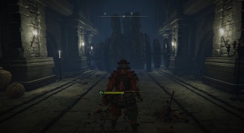 Не спешите бежать вперед, иначе попадете под колеса огромной колесницы. Дождитесь, когда она начнет спускаться, и бегите за ней. Прячьтесь от нее в укрытиях по краям спуска и продолжайте бежать. Так вы окажитесь в подземелье. Здесь можно найти множество расходных материалов и полезных предметов, включая могильный ландыш, причем драться с противниками необязательно.