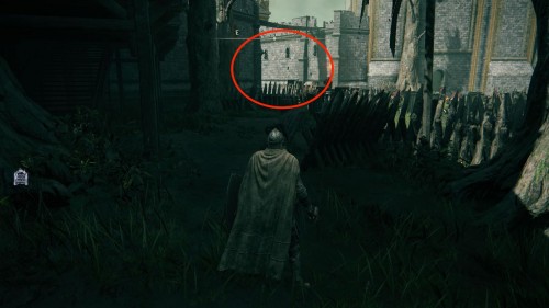 Когда окажитесь снаружи, направляйтесь на юг, проходя через участок с деревянным частоколом и кольями. Советуем вам держаться левой стены, чтобы обойти опасных противников. Продолжайте идти по данному пути, а затем пройдите через открытые решетчатые ворота чуть внизу.