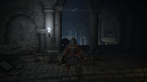 В стартовой области рядом с местом благодати «Плавучее кладбище» можно обнаружить статую клыкастого беса и туманную завесу. Взаимодействовав с каменным изваянием, вы узнаете, что вам требуется мечевидный ключ, чтобы убрать преграду. Если вы взяли эти ключики в качестве стартовой реликвии, то просто воспользуйтесь ими. В ином случае вам придется вначале отыскать их в других локациях.