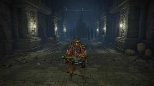 Наверху пройдите через небольшой туннель и сразитесь с более крупным призрачным врагом. Хотя это и не босс, он весьма силен и агрессивен. Дождитесь, когда он совершит комбо, обязательно уклонитесь от последнего удара, а затем нанесите ему критический урон. Если вы быстро бегаете и хорошо уворачиваетесь, то можете попробовать выманить врага в коридор и вывести его прямо под колесницу. Разобравшись с ним, вы получите Печать драконьего причастия. В самом помещении можно найти Смазку из драконьей раны.